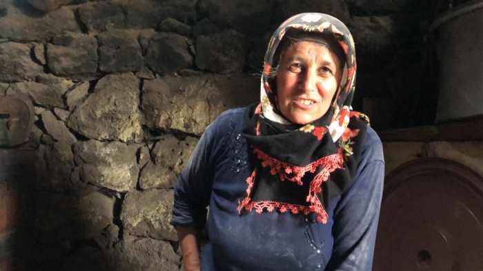 Yün çırpan, çeçil peyniri yapan Yurdagül Demirel, akrabalarıyla birlikte semaver çayı yaparak yorgunluğunu atmaya çalıştı.