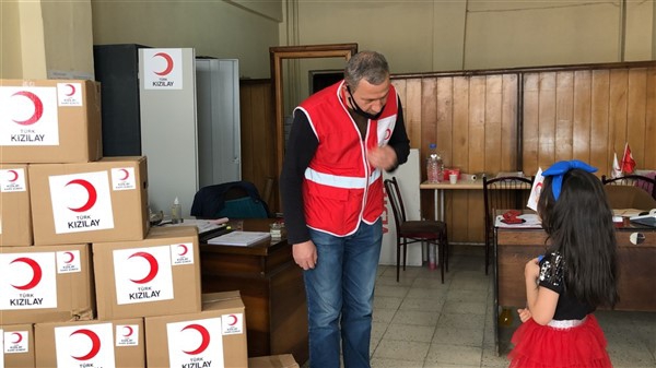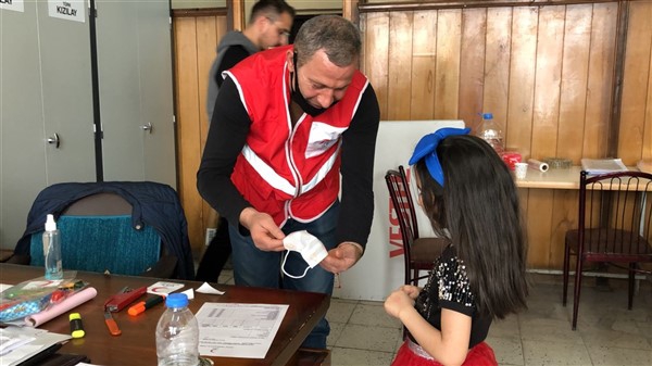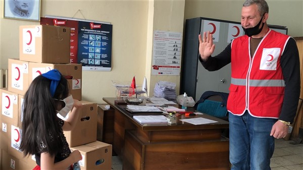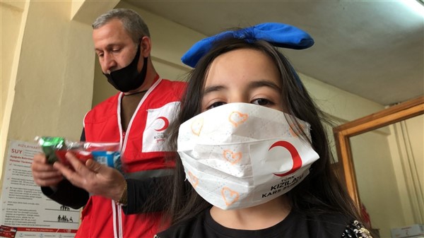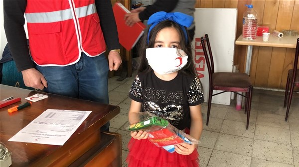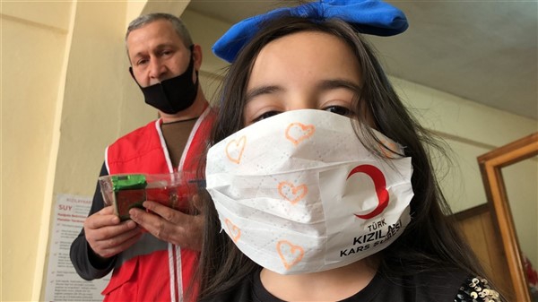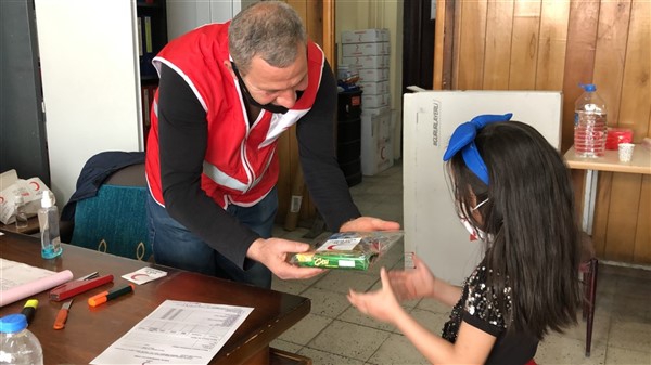 Çocuklardan bazıları da Kızılay logolu ve kalp şekilli maske istiyor. Görevliler de Kızılay amblemi yapıştırıp, kalp resimleri çizdikleri maskeleri çocuklara hediye ediyorlar. Hediye bununla da sınırlı kalmıyor. Kızılay’ın sokağa çıkma izin günlerinde aileleriyle birlikte parklara gidenler için hazırladıkları hediyeleri de armağan ediyorlar.