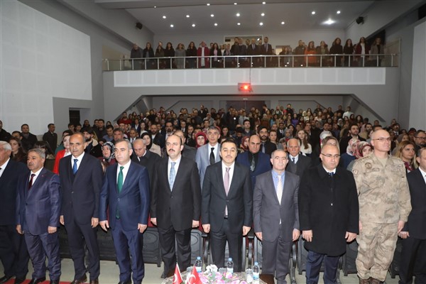 Öğretmenler Günü kutlama programı daha sonra Halk Eğitim Merkezi çok amaçlı salonunda devam etti. Saygı duruşu ve İstiklal Marşı’mızın okunması ile başlayan törende öğretmenlik vurgusunu konu alan sinevizyon gösterisi sunuldu. Bir öğrenci tarafından “Öğrenci gözüyle öğretmen” konulu ve bir öğretmen tarafından mesleğe yeni başlayan öğretmenler adına yapılan konuşma gerçekleştirdi. Mesleğe yeni başlayan öğretmenlerin Türk Bayrağına el basarak yemin etmesinin ardından İl Milli Eğitim Müdürü Gökhan Altun ve Vali Türker Öksüz Öğretmenler Gününün anlam ve önemini belirten bir konuşma yaptı.