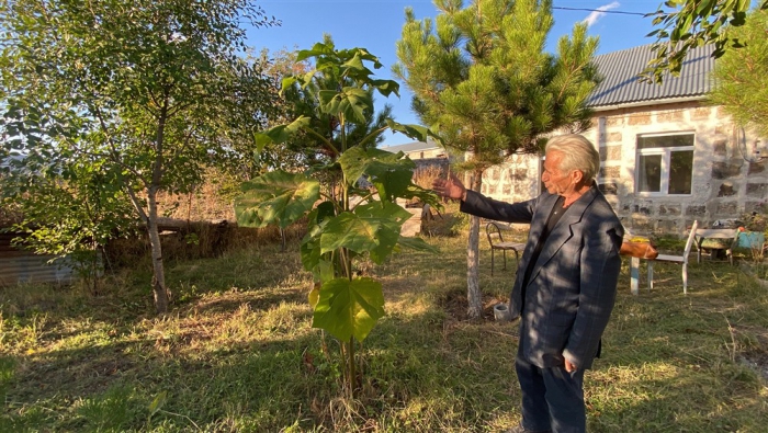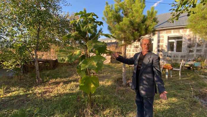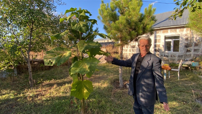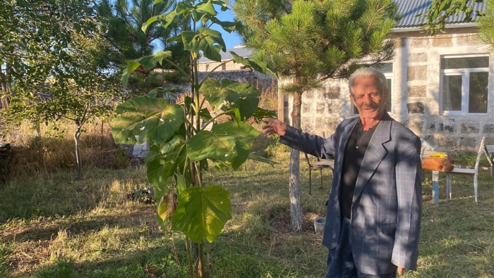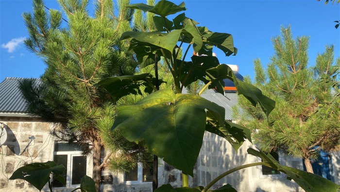 Kars’ın merkeze bağlı Ayakgedik Köyü’nde 68 yaşındaki bahçıvan Mecit Kılıç, evinin bahçesinde anavatanı Çin olan Pavlonya ağacı yetiştirdi. Kısa sürede adam boyunu geçen ağaca gözü gibi bakan Mecit Kılıç, bu ağaçların sayısını artıracağını söyledi.