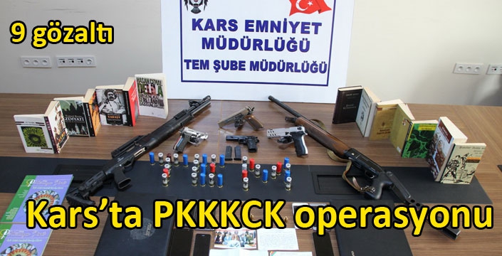 Kars Emniyet Müdürlüğü Terörle Mücadele Şube Müdürlüğü görevlilerince PKK/KCK terör örgütünün faaliyetlerinin deşifre edilmesi ve engellenmesine yönelik yapılan çalışmalar kapsamında; İl merkezi, Kağızman, Digor, Susuz ilçesi ile Erzurum ve İstanbul ilinde tespit edilen adreslere 01.11.2019 günü saat:06.00 sıralarında eş zamanlı yapılan operasyon neticesinde PKK/KCK terör örgütü ile irtibatlı olduğu tespit edilen 9 şüpheli yakalanarak gözaltına alındı.