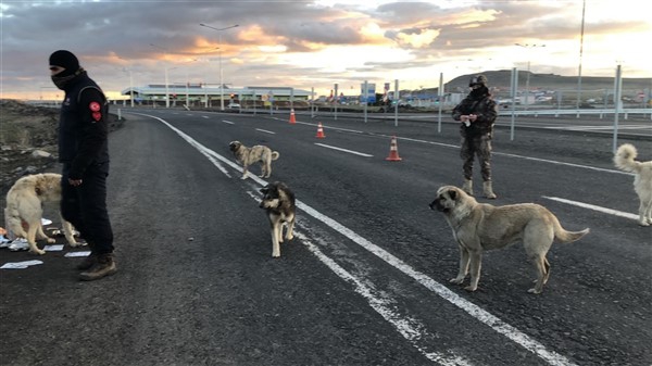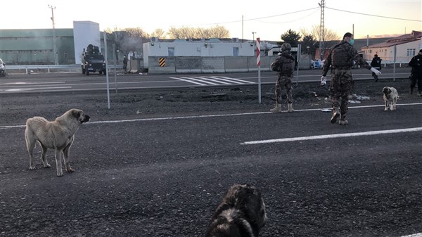 Kars’ın giriş çıkış noktalarındaki korona tedbirleri uygulamaları bugün çok anlamlı bir görüntüye tanıklık etti. Alanda görevli polisler araçları durdurup kimlik kontrolü ve uyarılarda bulunurken etrafı sokak köpekleri sardı. Bu sırada bir grup özel harekat polisi köpeklere yiyecek getirerek yol kenarında karınlarını doyurmaya başladı. Uygulamayı görüntüleyen gazetecilerin objektifleri bu defa sokak köpeklerini elleriyle doyuran polislere yöneldi.