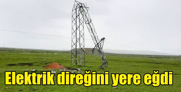 Kars’ın Arpaçay ilçesine bağlı Çanaksu köyünde etkili olan şiddetli fırtına yüksek gerilik hattının geçtiği demir elektrik direğini yere eğdi.