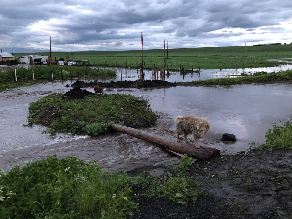 Çiftlik sahibinin köpekler ise kurtarılarak getirildikleri yol kenarından sık sık sahiplerinin yanına gitmeye çalıştılar. Köpekler daha sonra sel üstüne çekilen odun direk üzerinden geçerek sahiplerine ulaştılar.