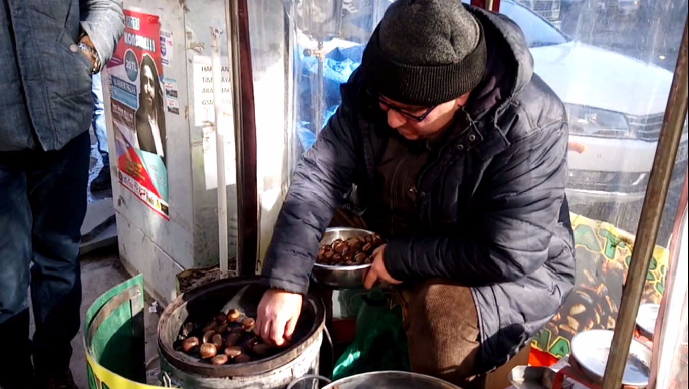 Kış mevsimiyle bütünleşen kestane, caddelerdeki kokusu, dumanı ve sıcaklığıyla vatandaşları cezbediyor. Hemen hemen her sokak başında bulunan seyyar kestaneciler ise soğuktan korunmak için kendilerine kabin yaparak çözüm buluyor.