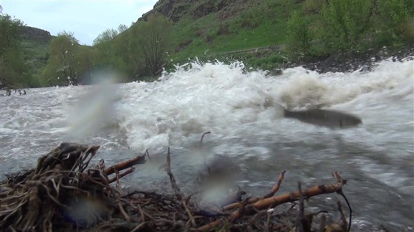 Kars’ta tatlı su kefallerinin yumurtalarını bırakmak için Kars Çayı üzerindeki HES Barajının azgın sularına karşı verdikleri zorlu yolculuk ilginç görüntüler oluşturdu.