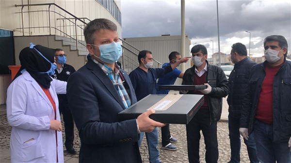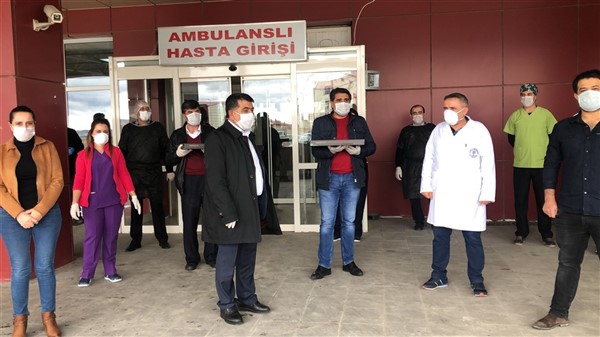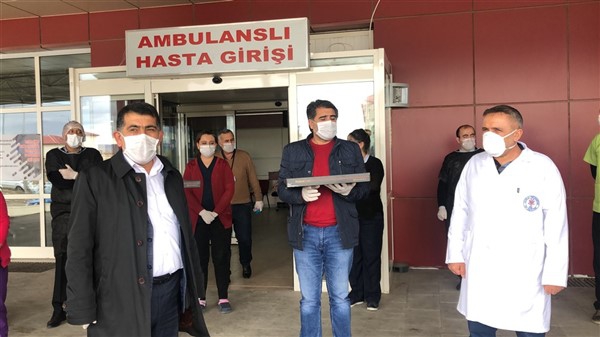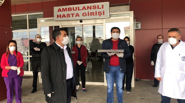 TCDD Taşımacılık AŞ çalışanları sağlık personellerine destek ve moral ziyaretinde bulunarak tatlı ikramında bulundu.