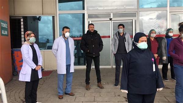 TCDD çalışanların da görevleri başında olduğunu belirten Toraman, “Ülkemizin bu zor günlerini en kısa sürede atlatması için sizlerde bizlerde canla bala çalışıyoruz. Sağlık çalışanları sizler ülkemizi saran bu virüste en önde savaşmaktasınız. Bizlerde TCDD AŞ Taşımacılık personeli olarak bu zor günlerinizde sizlere destek için buradayız. Başta genel müdürümüz Kamuran Yazıcı’nın bölge müdürümüz Erhan Tepe beyin sizlere selamını getirdik. Sizler bu virüsle ön safta savaşıyorsunuz her ne kadar da sizin gibi bizlerde çalışıyoruz. İnşallah bu kötü günleri sizlerin sayesinde atlatacağız. Gerçekten sizler çok zor şartlarda görev yapıyorsunuz. İnşallah bu kötü günler geride kalacak. Onun için sizleri gönülden alkışlıyoruz.” diye konuştu.