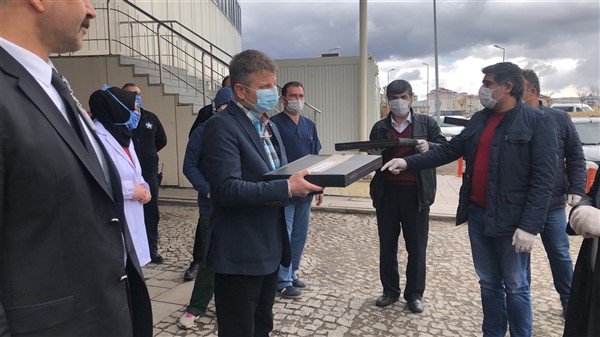 Kars’ta TCDD Taşımacılık AŞ çalışanlarından sağlık personellerine moral ziyareti