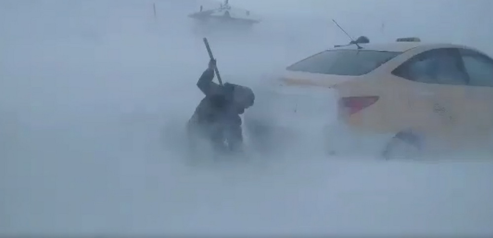 Tipi de kara saplanan aracı kurtarmak için vatandaşlar seferber oldu. Halatla bağlanan aracı çıkarmak için canla başla çalışanlar tipi altında büyük zorluk çektiler. Nefes almakta bile zorlandıkları gibi dondurucu soğukla da mücadele ettiler.