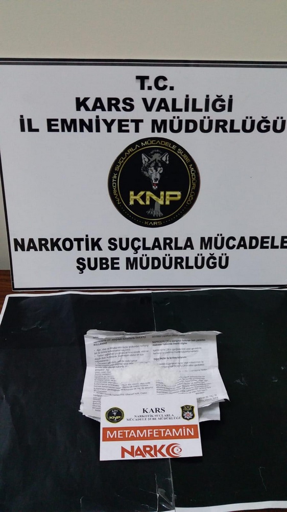 Kars Emniyet Müdürlüğü Narkotik Suçlarla Mücadele Şube Müdürlüğü’nce Analiz çalışması sonucu fiziki takibi yapılan bir araç bugün sanayi uygulama noktasında durduruldu. Araç içinde bulunan S. M.,Ö.B.,E.A. isimli şahısların yapılan üst aramasında 6.16 gram Metamfetamin maddesi elde edildi, adli tahkikata başlanıldı.
