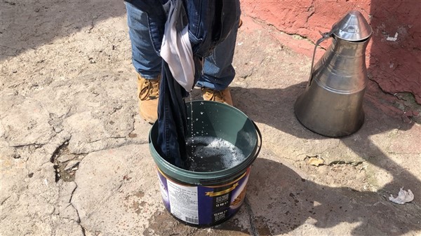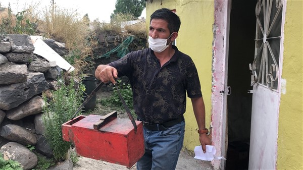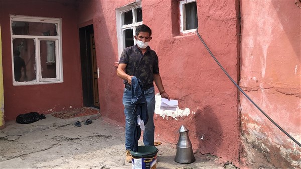 Tutunacak tek bir dalı bile kalmayan Ahmet Aktaş, çamaşır makinesi olmadığından elbiselerini soğuk suyla bidonda yıkamak zorunda kalıyor.