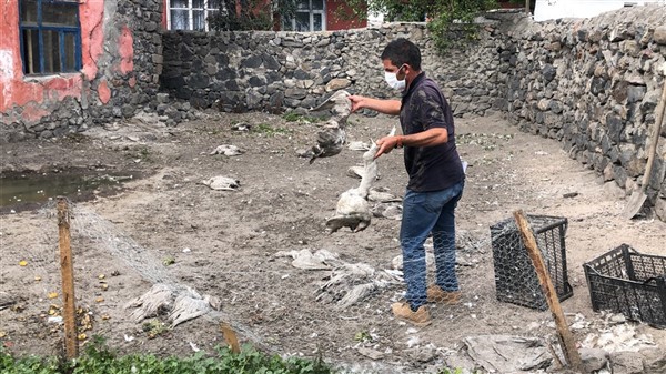 Dün de bacağındaki rahatsızlık nedeniyle hastaneye giden Aktaş, Kaleiçi Mahallesi’nde aylık 300 TL’ye kiraladığı evine geri döndüg3ünde bahçedeki 20 adet kazın sokak köpekleri tarafından boğularak telef edildiğini gördü. Tek bir kazın bile yaşamadığını görünce adeta yıkılan Aktaş, üzüntüsünden ağlamaya başladı.