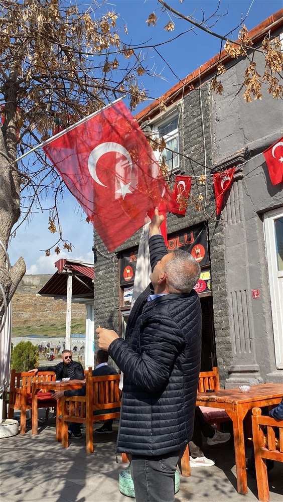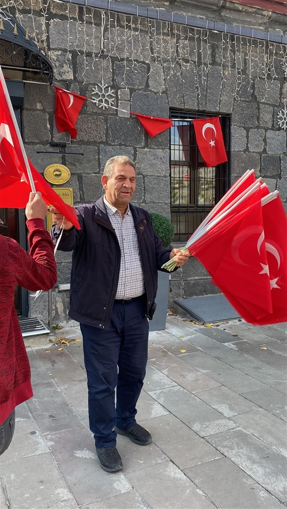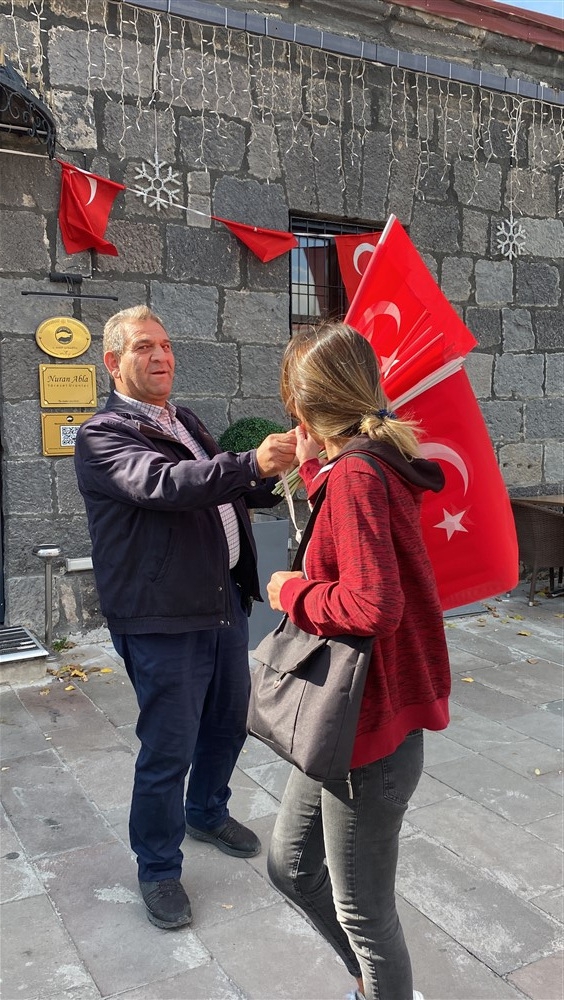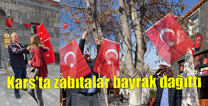 Cumhuriyet'in 100. yıl dönümü vesilesiyle Kars belediyesi tarafından esnafa ve vatandaşlara Türk bayrağı dağıtıldı.