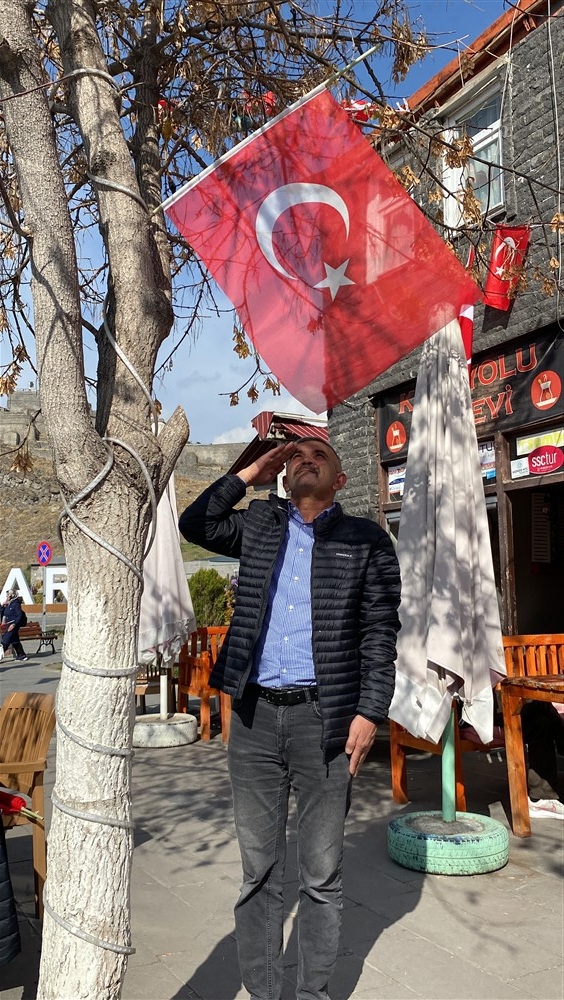 Yavuz Günay da bayrağa selam durarak cumhuriyetin 100. Yılına ulaşmanın sevincini ve gururunu yaşadıklarını söyledi.