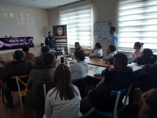 Kars Emniyet Müdürlüğü Narkotik Suçlarla Mücadele Şube Müdürlüğü ve İl Jandarma Komutanlığı ile müşterek başlattığı eğitim faaliyetlerine devam ediyor.