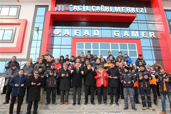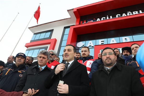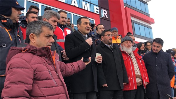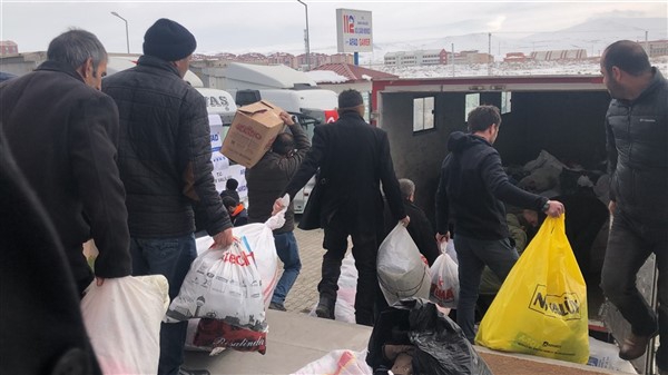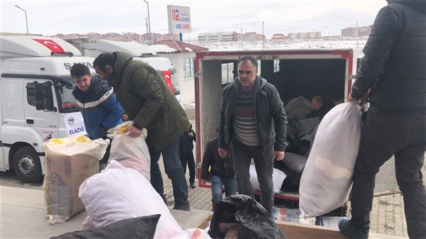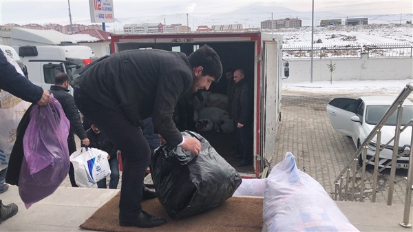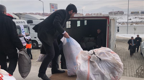 Vali Türker Öksüz’ün konuşmasının ardından İl Müftüsü Yusuf Eviş tarafından dua okundu ve temin edilen 2 tır yaşam malzemesi Elazığ’a gönderildi.