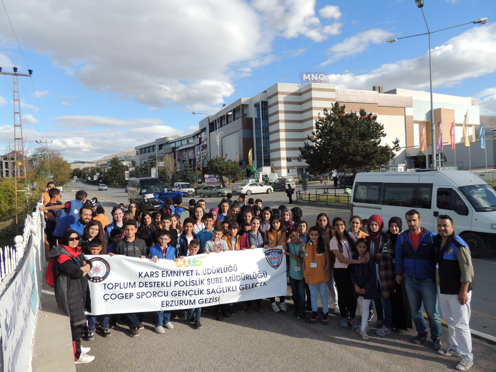 Kars İl Emniyet Müdürlüğü, Toplum Destekli Polislik (TDP) Şube Müdürlüğü görevlilerince yürütülen "ÇOGEP Sporcu Gençlik Sağlıklı Gelecek" adlı projesi kapsamında; spor kurslarına devamlılık sağlayan 100 çocuğun katılımıyla Erzurum’a günübirlik gezi düzenlendi.