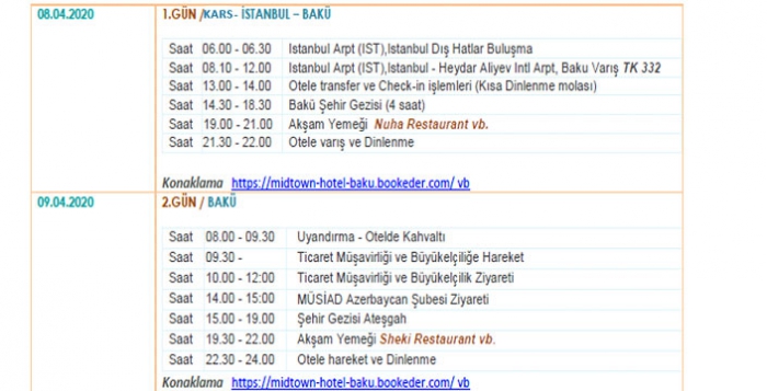 Kars Ticaret ve Sanayi Odası Organizasyonu ile birtakım temaslarda bulunmak ve yatırım ortamlarını araştırmak üzere Azerbaycan’nın Başkenti Bakü’ye Ticari İş Gezisi organize edilecek.