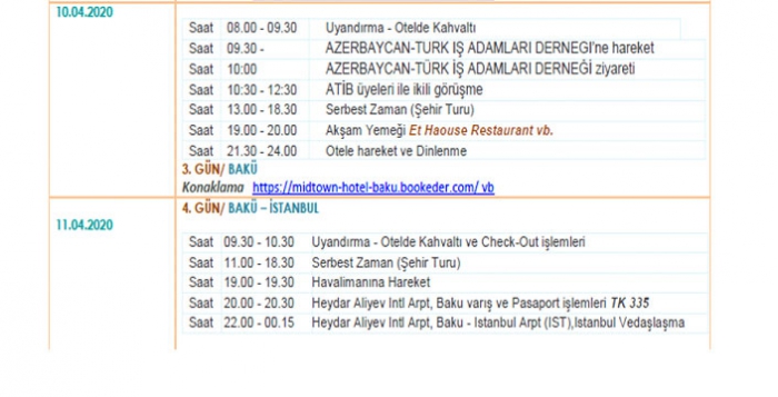 Gezi 8-11 Nisan 2020 Tarihleri arasında düzenlenecek ve çeşitli sektörlerden işadamlarının katılımları ile gerçekleşecektir.