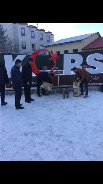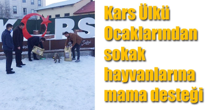 Kars il merkezinde yaşam mücadelesi veren sokak hayvanlarına duyarsız kalmayan Kars Ülkü Ocakları adına açıklama yapan Başkan Oğuz Güngör yaptığı açıklamada; “Dünyamızı etkisi altına alan Covid-19 salgını ve şehrimizdeki zorlu kış şartlarının hayvanların mama ve su bulmasını zorlaştırmıştır. Yapmış olduğumuz çalışma kapsamında şehrimizin belirli noktalarında sokak hayvanlarına mama ve su temini yapılmıştır. Böylesi önemli bir faaliyette bulunarak zorlu kış şartlarında sahipsiz sokak hayvanlarının beslenmesinin yanı sıra Kars halkımızın bu konuda hassas davranarak sokak hayvanlarına karşı duyarlı olması davetinde bulunuyoruz. Sokak hayvanlarımıza yönelik yaptığımız çalışmalar ilerleyen günlerde devam edecektir.” dedi.