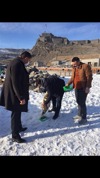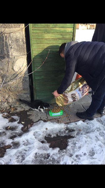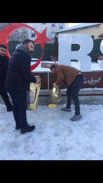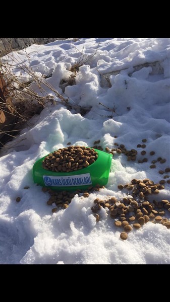 Kars Ülkü Ocaklarından sokak hayvanlarına mama desteği