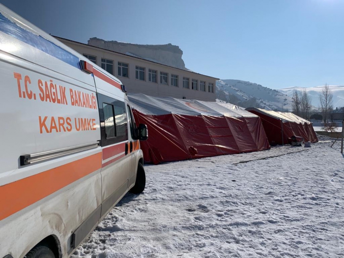 İlk geceyi yaklaşık 150 kişi KARS UMKE ekibinin kurduğu 2 adet çadırda geçirdi. Çoluk çouk, yaşlı genç herkesin yarasını sardığı gibi sıcak çay ve kahve ikramlarında da bulundu.