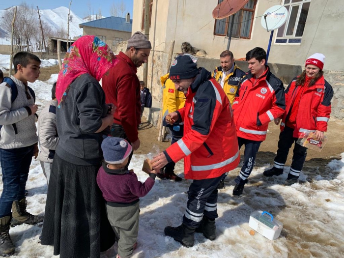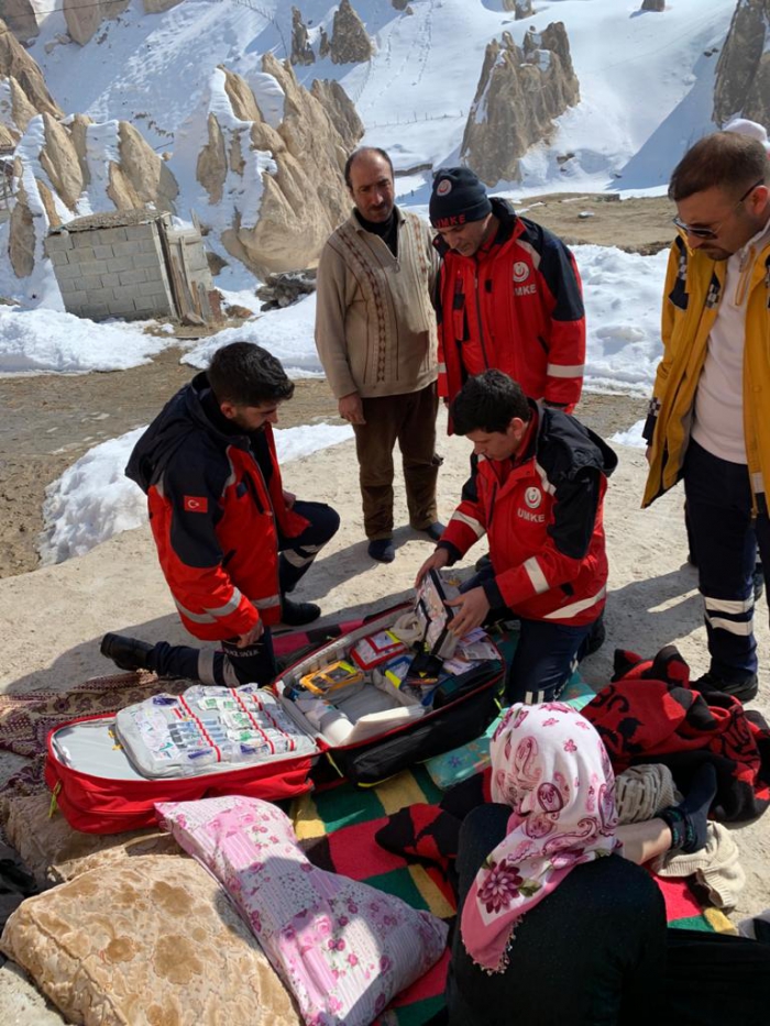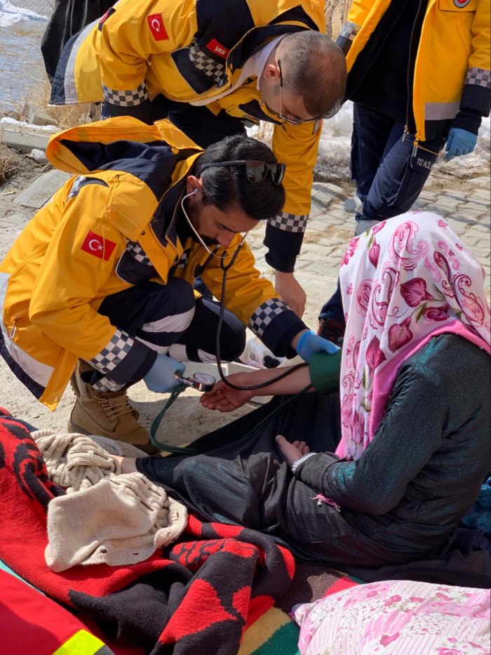 Acil ve Afetzede Sağlık Hizmetleri Birim Sorumlusu Tahsin Ulu başkanlığındaki 10 kişilik UMKE ekibi depremin hemen ardından gittiği Van’ın Başkale ilçesi Yavuzlar köyünde depremzedelerin yaralarını sarmaya başladı.