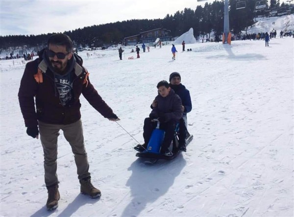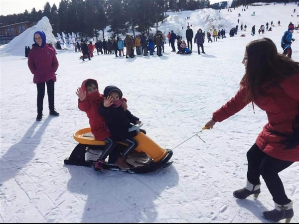 Kars Umut Rehabilitasyon Merkezi da öğrencilerini kayak sporuyla tanıştırmak, kızak kaymalarını sağlamak için Sarıkamış Kayak Merkezine götürdü.