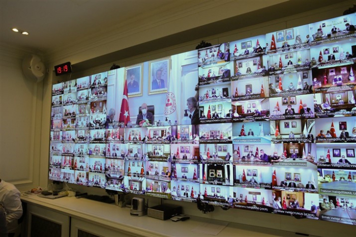 Kars Valisi Türker Öksüz, İçişleri Bakanı Süleyman Soylu'nun başkanlığında video konferans yöntemiyle gerçekleştirilen "Kurban Bayramında Uygulanacak Koronavirüs Tedbirleri ve Trafikte Alınacak Önlemler Toplantısı'na katıldı.