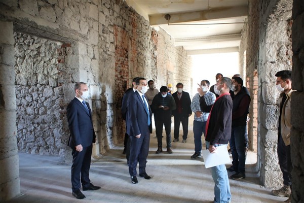Kars Valisi Türker Öksüz, restorasyon çalışmaları devam etmekte olan Polis Evi inşaatında incelemelerde bulunarak çalışmalarla ilgili olarak yetkililerden bilgi aldı.