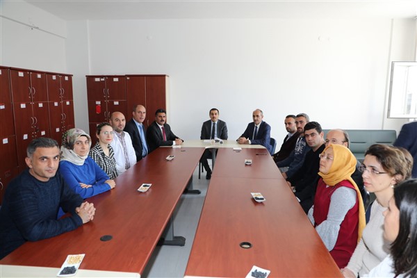 Vali Öksüz, ziyaretinde son olarak öğretmenler ile bir aya gelerek bir toplantı gerçekleştirdi. Toplantıda öğretmenlere hitap eden Vali Türker Öksüz; öğretmen ve öğrencilerimizin ihtiyaçlarını yerinde görmek ve okulumuzun eğitim açısından hangi aşamada olduğunu tespit etmek amacıyla bir araya geldiklerini belirterek, devlet olarak en öncelikli konunun eğitim ve öğretim konusu olduğunu vurguladı.