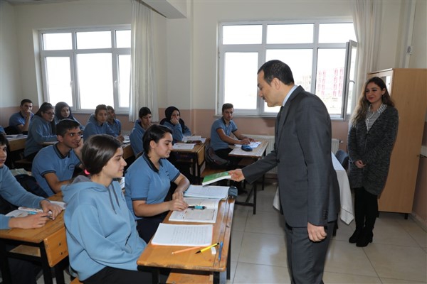 İl Milli Eğitim Müdürü Gökhan Altun, okul yöneticileri, öğretmen ve öğrenciler tarafından karşılanan Sayın Valimiz, sınıfları ziyaret etti ve öğrenciler ile sohbet ederek nasihatlerde bulundu.