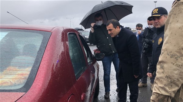 Vali Türker Öksüz, İl Emniyet Müdürlüğü, İl Jandarma Komutanlığı ve sağlık ekipleri tarafından şehrin giriş-çıkışlarında uygulama yapılan bölgeleri ziyaret ederek, Koronavirüse karşı alınan tedbirler kapsamında devam eden kontrolleri yerinde inceledi.