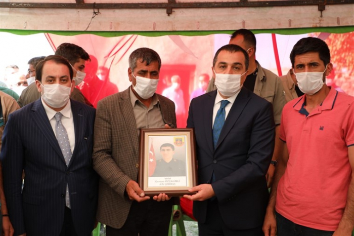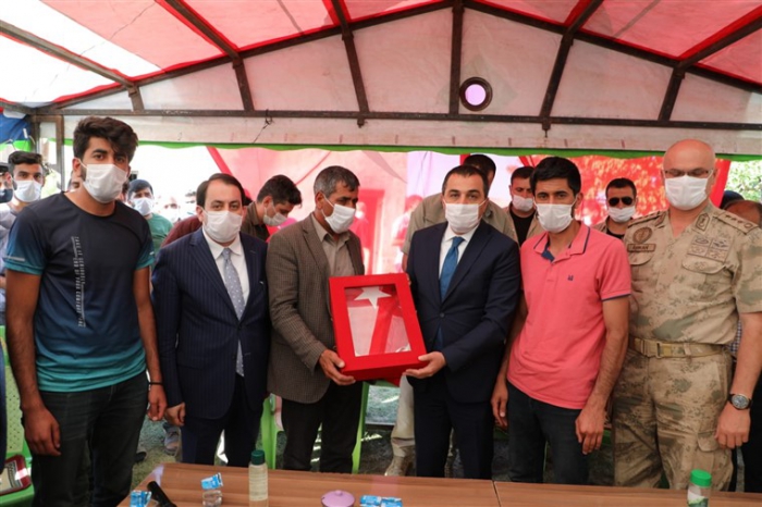 Vali Öksüz, acılı aileye başsağlığı dileklerini ileterek, Türk Bayrağı takdim etti.
