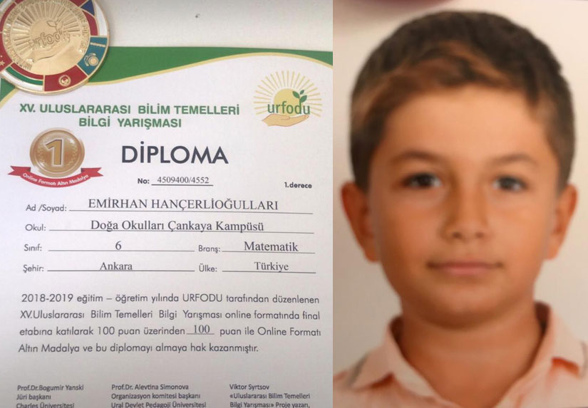XV. Uluslararası Bilim Temelleri Bilgi Yarışmasında, Doğa Okulları Çankaya Kampüsü 6. sınıf öğrencilerinden Karslı Emirhan Hançerlioğulları, 5, 6, 7, 8. 9, 10. ve 11’inci sınıf öğrencilerinden ve birçok ülkeden toplam 382 bin 560 öğrenci katıldığı yarışmada Matematik dalında dünya birincisi oldu.