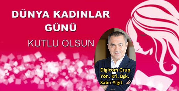 Digicom Grup Yön. Krl. Bşk.Sabri Yiğit, 8 Mart Dünya Kadınlar Günü nedeniyle bir mesaj yayınlayarak, “Kadınların çalışma hayatında var olmalarının toplumsal gelişmenin olmazsa olmazı olduğunu biliyoruz. Kadınların iş gücüne katılımı kendi sosyo-ekonomik durumlarını, ailelerini ve çevrelerini geliştirecek ve tüm toplumda etki yaratacak önemli bir değişim ve gelişimin öncüsü olacaktır.” dedi.