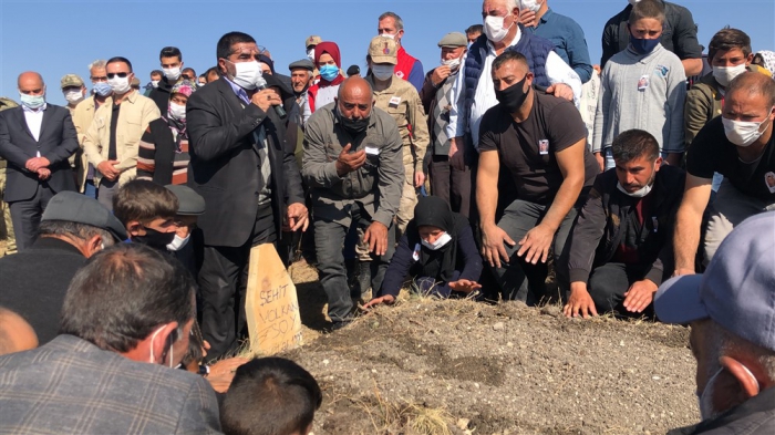Şehidin cenazesi saygı atışı eşliğinde köy mezarlığında toprağa verildi.