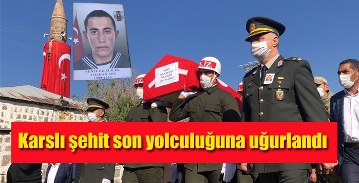Hatay İskenderun'daki Deniz Üs Komutanlığında, görevi esnasında rahatsızlanınca şehit olan sözleşmeli deniz er Volkan Soy, memleketi Kars'ın Akyaka ilçesine bağlı Büyük Durduran Köyünde düzenlenen törenin ardından toprağa verildi.