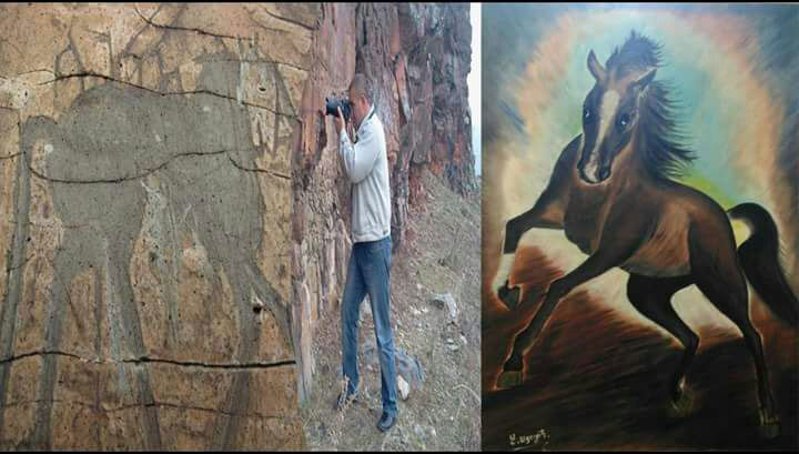 Yaptığı at resimlerinin yanısıra, Kars‘ta tarihi binlerce yıl öncesine dayanan kaya resimleri de tablolarına aktaran Üzeyir, “Eski çağlardaki sanat çizerleri, düşüncelerini ve duygularını belirtmek için mağara duvarlarına ve yüksek kayalara çizimler yapmışlar. Bugün,