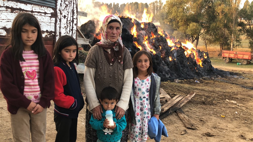 41 yaşındaki eşi Bilgin Ergül’ün yakalandığı amansız hastalığı nedeniyle 7 yıldır hastanede tedavi görmesiyle 3 kız çocuğu, kayınvalidesi ve yeğenine bakan 37 yaşındaki gelin Ayla’ın 1 ay önce meydana gelen yangında 40 ton otu kül olmuştu.