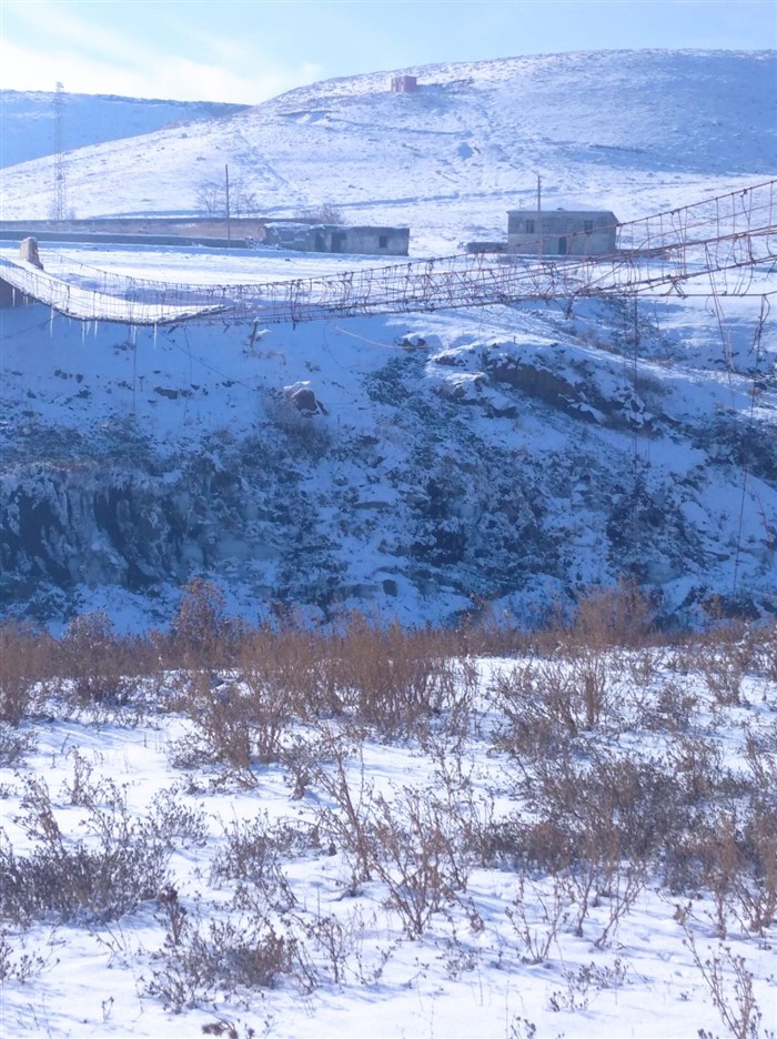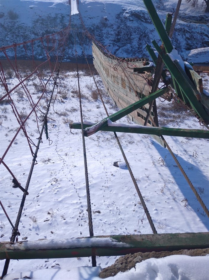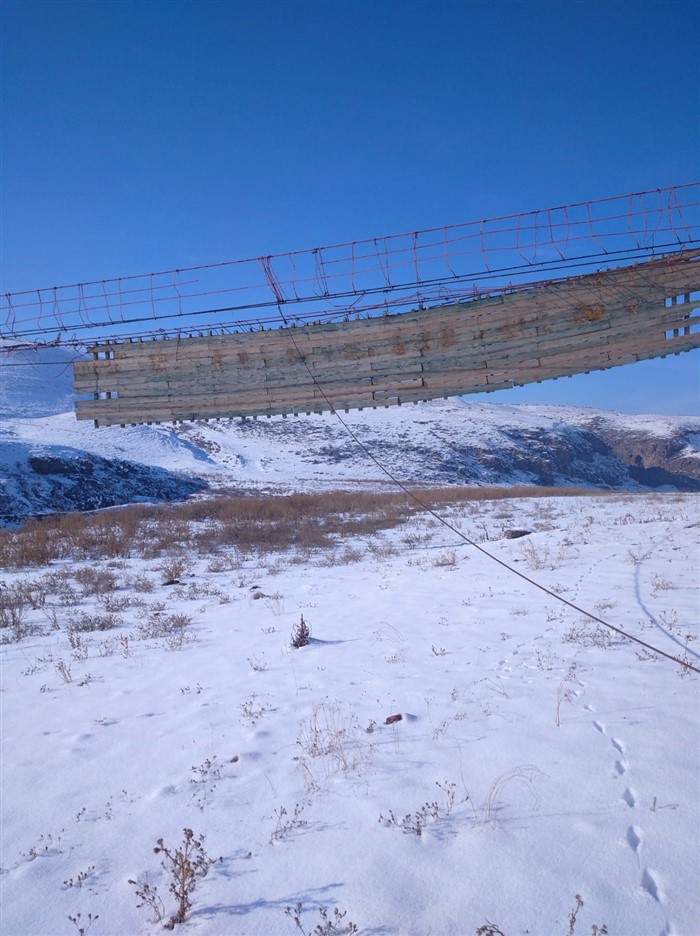 Kars'ın Akyaka ilçesinde şiddetli rüzgar nedeniyle yıkılan 110 metrelik asma köprü yerine yenisi yapılmayınca bu kış mevsiminde hizmet veremeyecek.