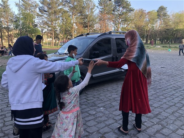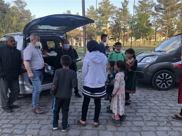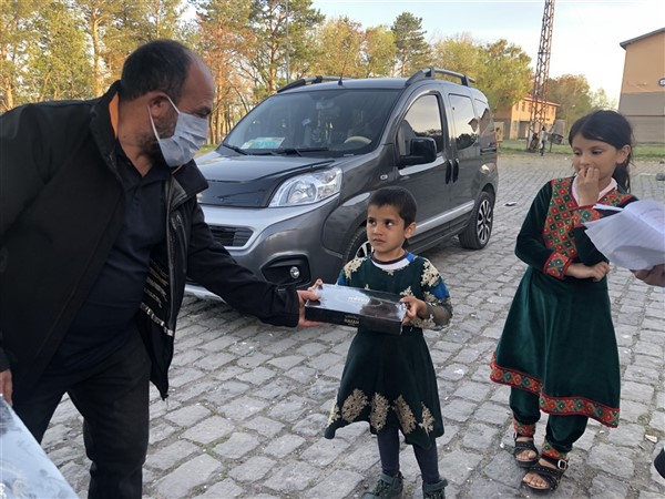 Küfeci Hasan Usta bayram öncesi hazırladığı tatlılarla Afgan aileleri ziyaret ederek tatlı ikramında bulundu.
