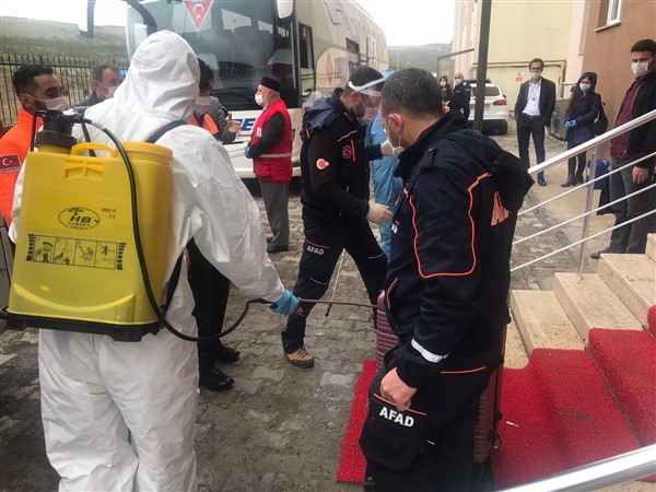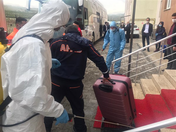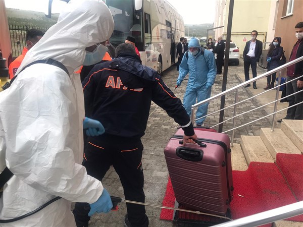 Kars Gençlik ve Spor İl Müdürlüğü İpek Yolu Öğrenci Yurdu'nda kalan misafirler, sağlık kontrolünden geçirildikten sonra görevliler eşliğinde otobüslere bindirildi. Yetkililer sosyal mesafe kurallarına uyarak vatandaşlarla ilgilenirken, Kars Kızılay Şubesi ise kumanya dağıttı. 103 Türk vatandaşı işlemlerinin ardından Afet ve Acil Durum Müdürlüğü koordinesinde memleketlerine uğurlandı.
