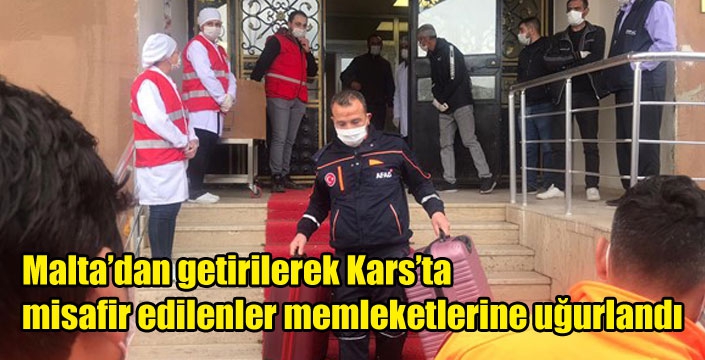 Malta'dan getirilerek yeni tip koronavirüs (Kovid-19) tedbirleri kapsamında Kars'ta karantinaya alınan 103 kişi, 14 günlük sürenin dolmasının ardından evlerine uğurlandı.