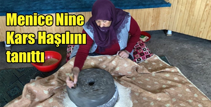 Menice Başkaya da atalarımızın yemek kültürünü gelecek nesillere aktarmak, tatmalarını ve onların da pişirmelerini sağlamak için Kars haşılı hazırladı. Kars Kafkas Atlı Spor Kulüp binasında hazırlıklarını yapan Menice Başkaya önce bulgur öğütme taşlarını hazırladı. Ardından da bulgurları azar azar taşın içine atarak bilek gücüyle çevirmeye başladı.