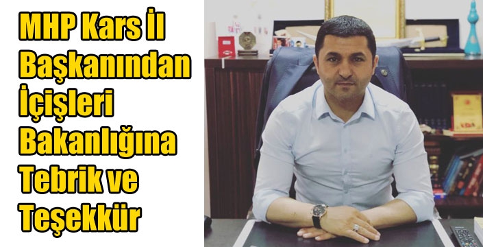 MHP Kars İl Başkanından İçişleri Bakanlığına Tebrik ve Teşekkür