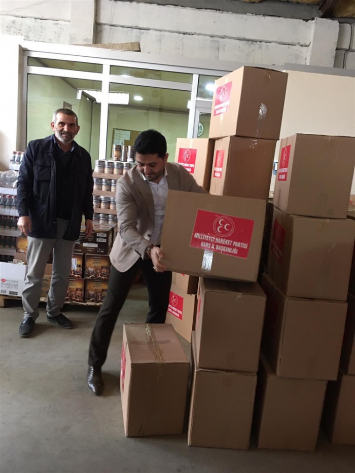 MHP Kars İl Başkanlığı ve Kadın Kolları’nın belirlediği ihtiyaç sahibi 200 aileye Ramazan kolisi yardımında bulunuldu.