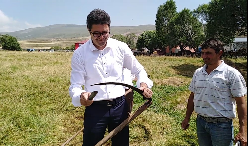 Balıkesir CHP Milletvekili Ensar Aytekin Baba ocağı Kars’ta tırpan salladı.