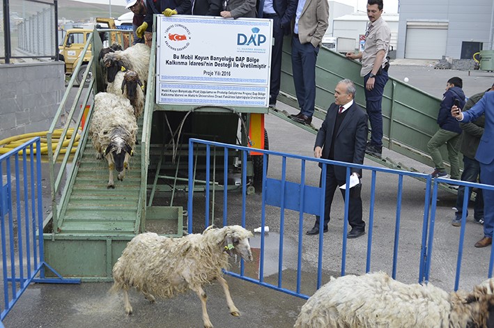 Küçükbaş hayvanları parazitlere karşı dezenfekte etmek amacıyla üretimi gerçekleştirilen DAP Mobil Koyun Banyoluğu, düzenlenen törenle 15 ilin Damızlık Koyun-Keçi Birliklerine teslim edildi. DAP İdaresi Başkanı Demir, “Çiftçilerimizin hayatını kolaylaştıran bu projenin kullanımının yaygınlaşmasını istiyoruz” dedi.